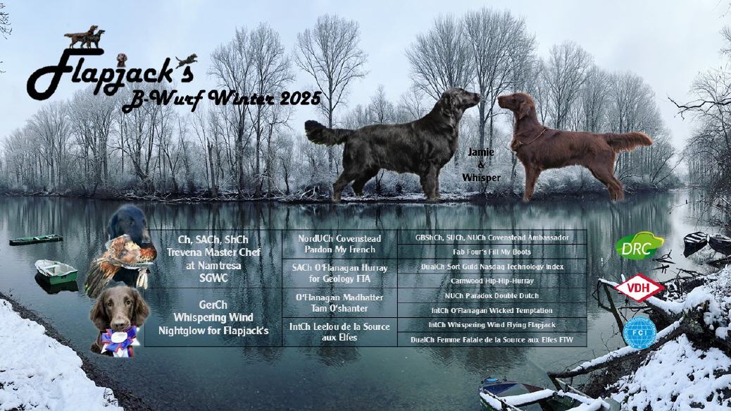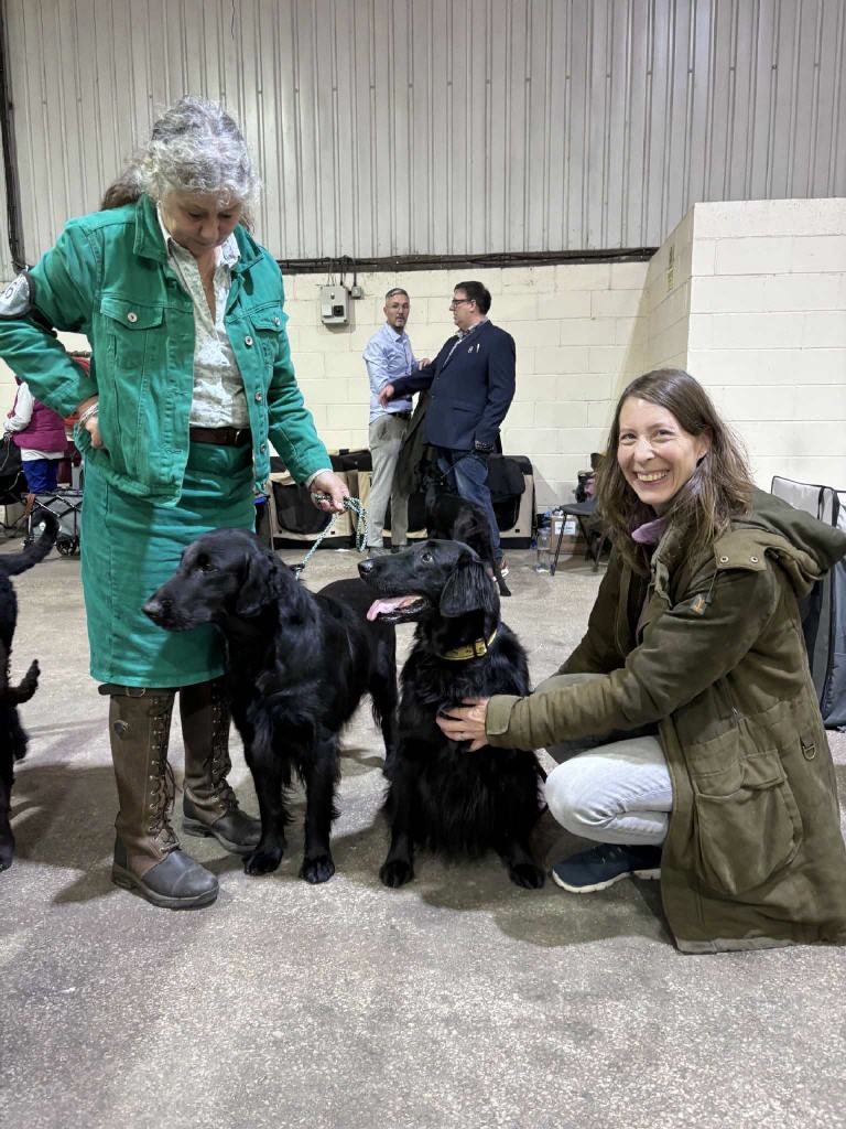 So, jetzt komme ich endlich dazu von unserer Reise nach England zu berichten. Da Hugo und Nick nicht mehr wirklich entspannt waren letzten Donnerstagabend, hatten wir uns dazu entschieden früh am Freitagmorgen aufzubrechen. Also ging es um 4 Uhr morgens los Richtung Calais. Da es sehr stürmisch war, haben wir anstatt der Fähre den Shuttle-Zug genommen. Die Einreise verlief problemlos. Von Folkstone bis London war der Vekehr noch gut, danach steckten wir, bis wir an Birmingham vorbei waren, im Verkehr. Gegen 19 Uhr kamen wir dann endlich an unserem Hotel in der Nähe von Shrewsbury an. Für den nächsten Morgen hatten wir uns mit Diane (Di), der Besitzerin von Jamie verabredet, um alles weitere zu besprechen. Auch Jamie konnten wir kennenlernen und wir waren uns anschließend beide einig, dass er der Richtige für Whisper ist. Wir hatten beschlossen, dass wir nochmal einen Progesterontest mit Whisper machen und im Nachhinein war es auch gut, dass wir den Test gemacht haben. Es stellte sich nämlich heraus, dass der Wert bei umgerechnet 6,1ng/mL lag, der Eisprung findet ungefähr zwischen 4-8ng/mL statt. Es war deshalb die Empfehlung, das Decken am Montag und am Mittwoch zu probieren, da die Eizellen nach dem Eisprung noch 2-3 Tage reifen müssen, bevor sie befruchtungsfähig sind. Also hieß es erstmal abchecken, ob wir länger bleiben können. Wir haben uns dann auf einen Kompromiss (Decken Montagvormittag und Dienstagnachmittag geeinigt, da Kristofs Chef am Donnerstag Abschied gefeiert hat und wir nicht direkt nach dem Decken wieder nach Hause fahren wollten. Der Zeitvertreib viel uns nicht schwer, denn die Gegend dort ist sehr schön und außerdem war am Sonntag eine Show, zu der auch Ellas Züchterin Gill gemeldet hatte. So besuchten wir samstags Kedleston Hall und einen Farmshop in Derbyshire, abends waren wir dann bei Di und ihrem Mann Mike zum Abendessen eingeladen und konnten auch ihre anderen Hunde kennenlernen. Sonntags fuhren wir zur Midland Counties Show und zu unserer Überraschung haben wir dort auch noch viele weitere Freunde getroffen, unter anderem Jane (die Besitzerin von Ellas Papa) und Lyn (die Besitzerin von Ellas einzigem Enkel). Es war ein sehr emotionales Wiedersehen! Am Montagmorgen haben wir uns dann mit Di getroffen und sind nach Belper gefahren, wo sie eine erfahrene Züchterin organisiert hatte, da es für Whisper das erste Mal war. Das Decken klappte, allerdings ohne hängen. Nach einem Tee haben wir noch Welpen geknuddelt und bekamen eine Geschichtsstunde über Belper und den "Old Nick". Zum Essen fuhren wir dann in ein wirklich tolles Pub und danach noch zu Di und Mike auf ein Glas leckeren Gin. Den Dienstagmorgen haben wir in Shrewsbury, der Geburtsstadt von Darwin, verbracht und fuhren dann anschließend wieder nach Belper. Das Decken klappte erneut, auch wieder ohne hängen. Zum Essen haben wir uns im "Red Lion" getroffen, wo wir noch einen sehr schönen gemeinsamen Abend hatten. Am Mittwochmorgen haben wir uns nach dem Frühstück wieder auf den Heimweg gemacht. Wir waren pünktlich am Tunnel (es war wieder sehr windig) und die lange Fahrt durch Frankreich regnete es ununterbrochen. Aber wir kamen ohne Stau sehr gut durch und waren um 23 Uhr wieder zu Hause. Es waren wirklich sehr schöne Tage in England! Wir konnten Jamie auch im Alltag kennenlernen und er hat wirklich einen super tollen entspannten Charakter! Wir sind sehr dankbar, dass Di und Mike uns Jamie für Whisper gegeben haben und auch für ihre Gastfreundlichkeit und Unterstützung! Jetzt heißt es Daumen drücken, damit wir beim Ultraschall in ca. 4 Wochen kleine Herzchen schlagen sehen!